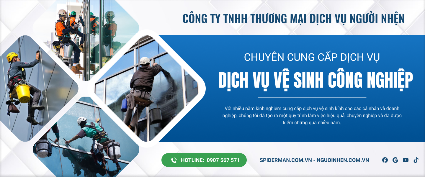 about usCông ty TNHH TM DV Người Nhện là đơn vị tiên phong trong lĩnh vực vệ sinh công nghiệp và bảo trì cao ốc tại TP. Hồ Chí Minh, với hơn 20 năm kinh nghiệm hoạt động và phát triển. Với đội ngũ nhân sự giàu kinh nghiệm, trang thiết bị hiện đại và quy trình làm việc chuẩn mực, Người Nhện luôn sẵn sàng đáp ứng những yêu cầu khắt khe nhất từ khách hàng trong các công việc đặc thù trên cao, đòi hỏi kỹ thuật và độ an toàn tuyệt đối.